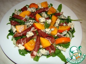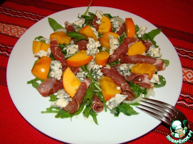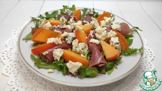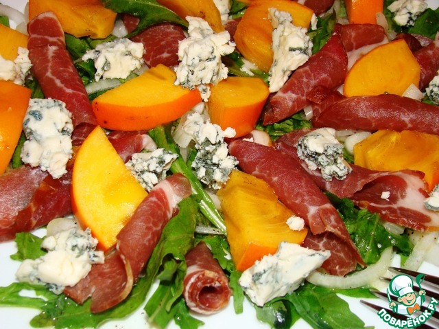 Рецепт «Салат с хурмой, хамоном и голубым сыром»: