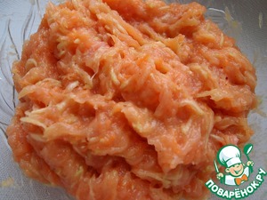 Морковь и кабачок помыть, почистить. Морковь натереть на мелкой терке, а кабачок на крупной. С тертого кабачка слить лишнюю жидкость.