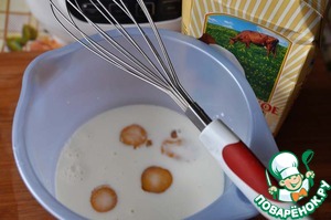 Слегка взбиваем венчиком яйца с молоком и солью.