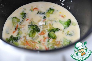 Добавляем разобранную на соцветия брокколи. Можно брать как свежую, так и замороженную.