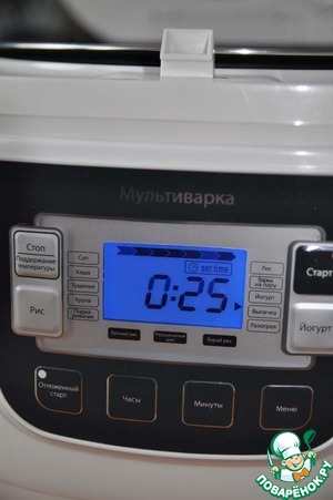 Включаем мультиварку на режим "Выпечка" на 25 минут, крышку закрываем.