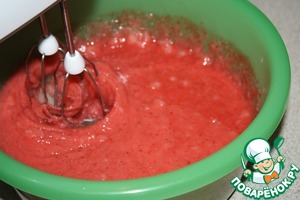 • Смешиваем и взбиваем миксером. Убираем в холодильник клубничный мусс и займемся тестом