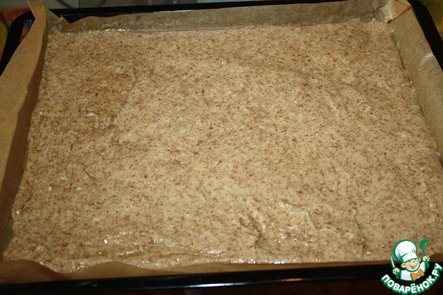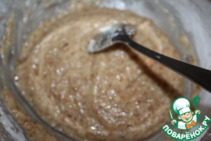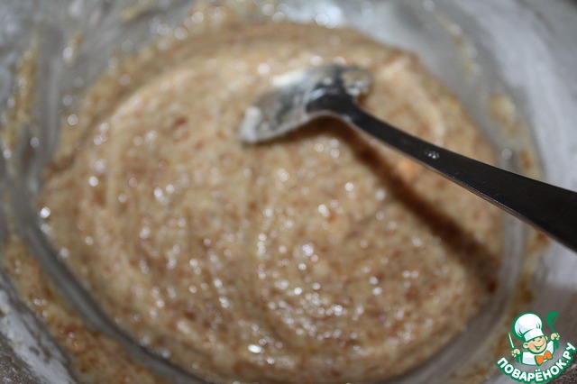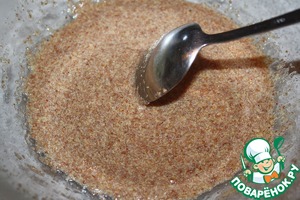 • Семена льна измельчаем в кофемолке. Заливаем горячей водой, даем постоять 2-3 мин, до "клеистого" состояния