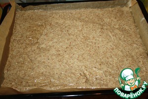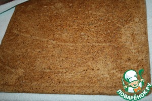 • Выкладываем тесто на противень, застеленный промасленной пекарской бумагой. Выпекаем в заранее разогретой духовке при температуре 200 градусов 15 мин. Не дожидайтесь, пока тесто зарумянится, иначе вы его пересушите и потом не сможете свернуть