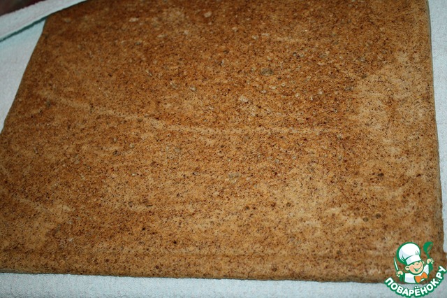 • Выпеченный бисквит, выкладываем на полотенце и укутываем. Я еще убрала его в пакет. Даем остыть