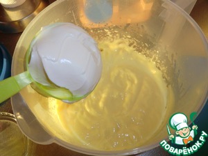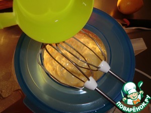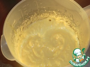 Тонкой струйкой вливаем рапсовое масло взбивая смесь миксером.