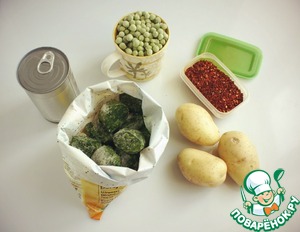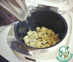 • Картофель нарежем на большие кубики, зальем стаканом воды.