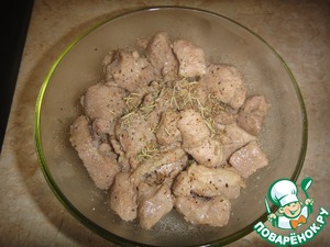 Мясо индейки режем примерно кусочками 3х3 см. Лук и чеснок мелко. Остальные овощи соразмерно мясу.