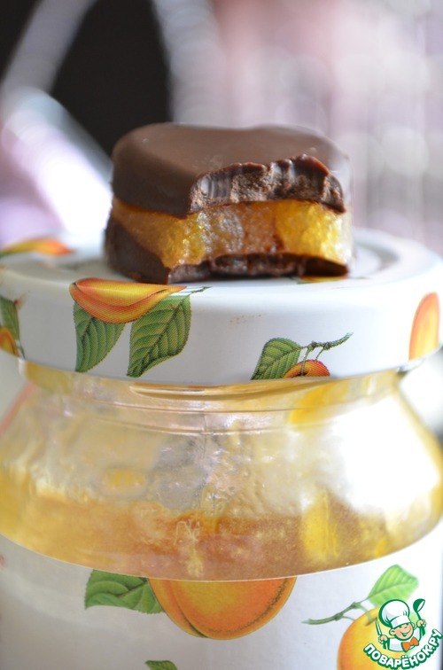 Растопить вторую половинку шоколадной плитки и вылить на абрикосовое желе. Убрать в холодильник на 1 час.