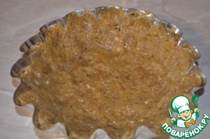 Форму для чизкейка слегка смажьте растительным маслом, выложите получившуюся массу равномерно разровняйте по всей форме. Запеките в предварительно разогретой духовке до 180 градусов около 10 минут.