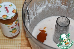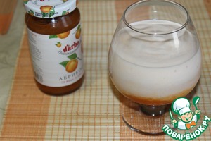 Молоко с растопленным маршмеллоу и 2 ст. л. абрикосового конфитюра пробить блендером в пушистую массу