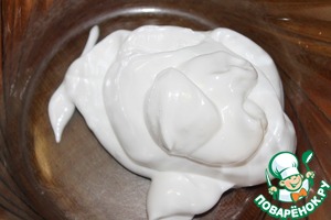 Белки взбить до пиков с сахарной пудрой и лимонным соком