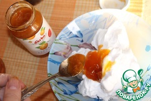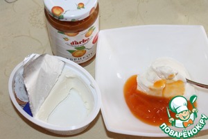 Творожный сыр смешать с абрикосовым конфитютом, добавить натуральный йогурт