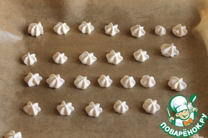 Отсадить маленькие меренги и запечь в духовке в течение 40 минут при темп 100 градусов