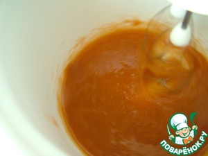 Даем немного остыть, градусов до 40-50, и начинаем взбивать конфитюр на средней или высокой скорости миксера.