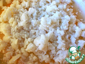 Для начала готовим тесто. Смешиваем муку, растительное масло, сахар. Хорошенько растираем.