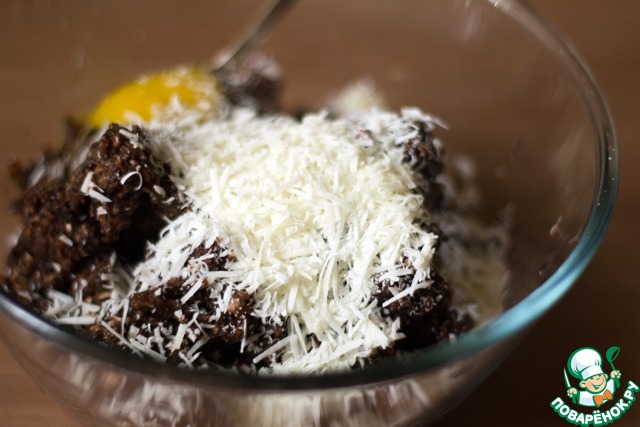 Грибы измельчить в кухонном процессоре. Добавить тертый пармезан, куриное яйцо.