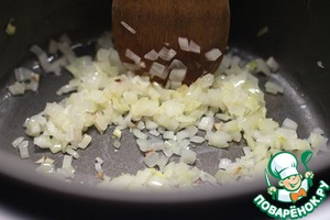 Мелко нарезать репчатый лук. В чашу мультиварки налить немного растительного масла, включить режим "ЖАРКА", выставить время - 10 минут. Обжарить лук, помешивая. Остудить.