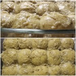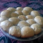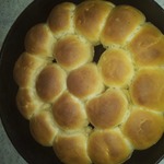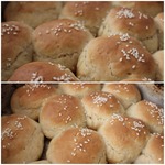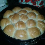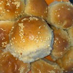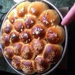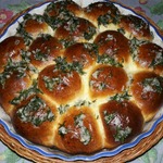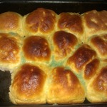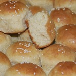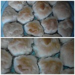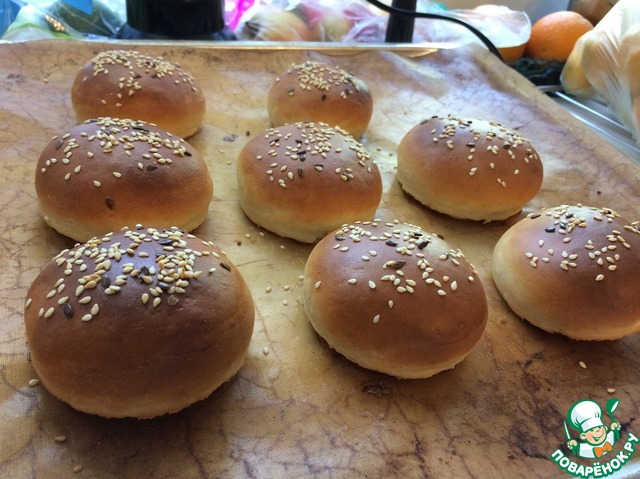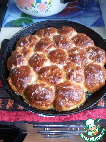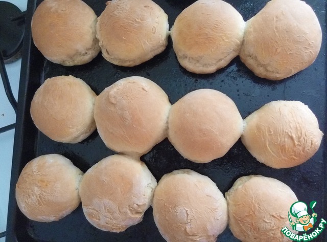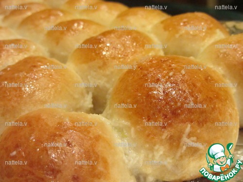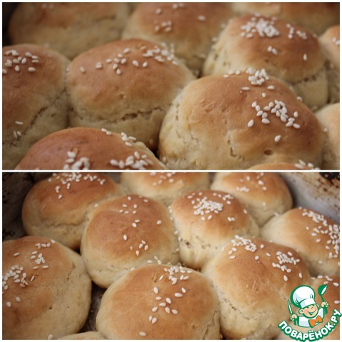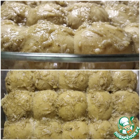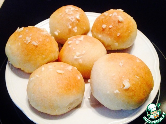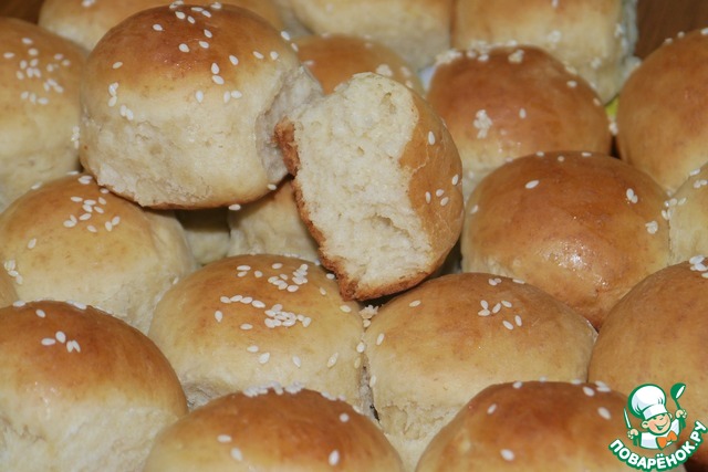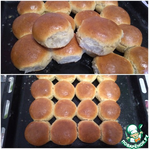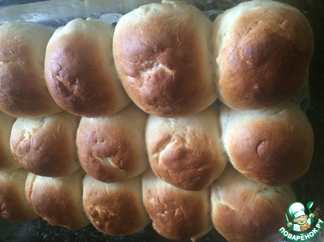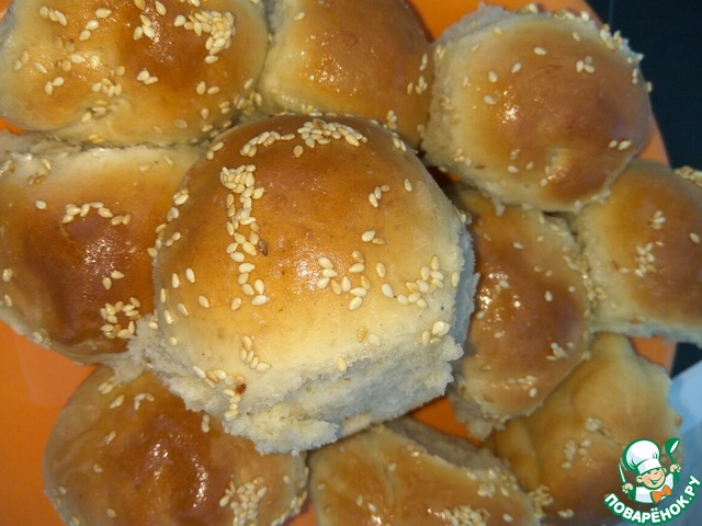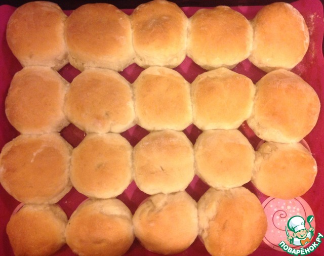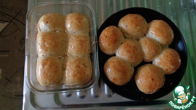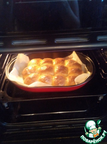муки нужно меньше, тесту дала расстояться мин 20, потом еще немного после формирования шариков. Ставила в духовку, нагретую до 150, потом дошла до 190. Выпекались минут 30 минимуму, никакие не 20.