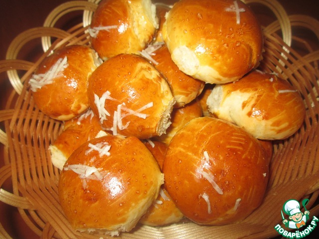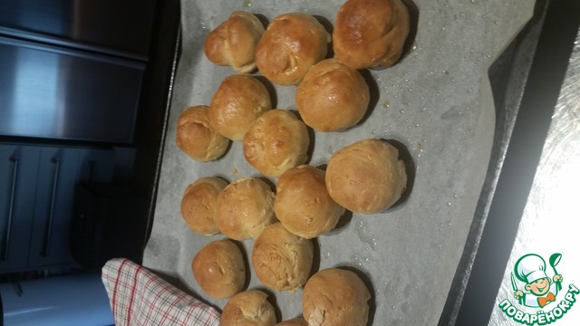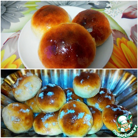 Я в процессе выпечки, когда уже они начинают немного подпекаться, смазываю смесью сахара и воды, тогда сверху получается красивая яркая корочка