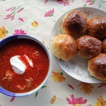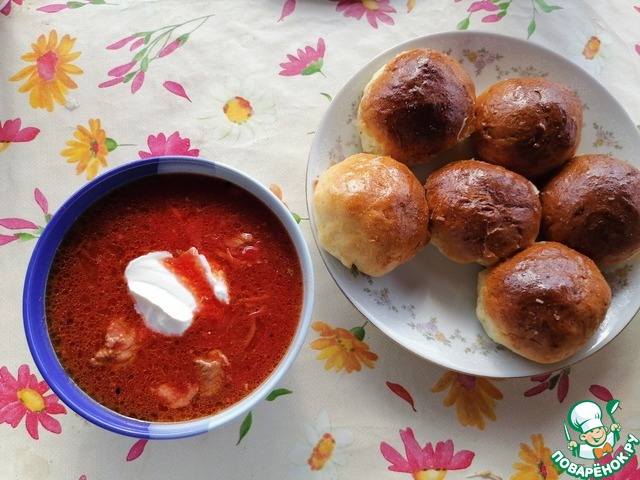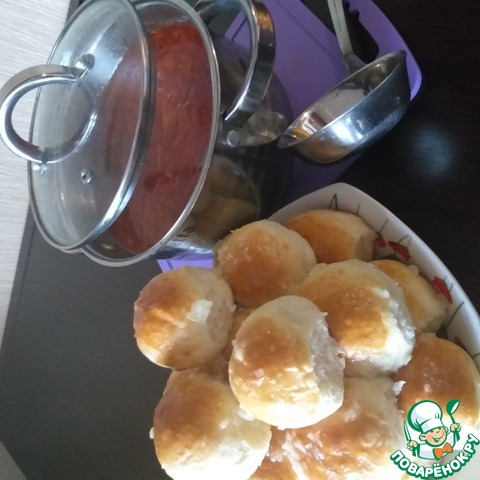 Второй день - остался борщ, пришлось испечь вторую партию. Те, кто не захотел борща, ели их с вареньем под чаек.