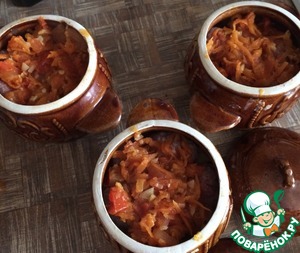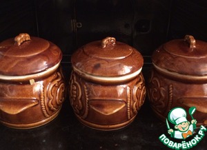 8. Закрываем горшочки крышками и ставим в духовку где- то на 40-50 мин. температура-200 град.