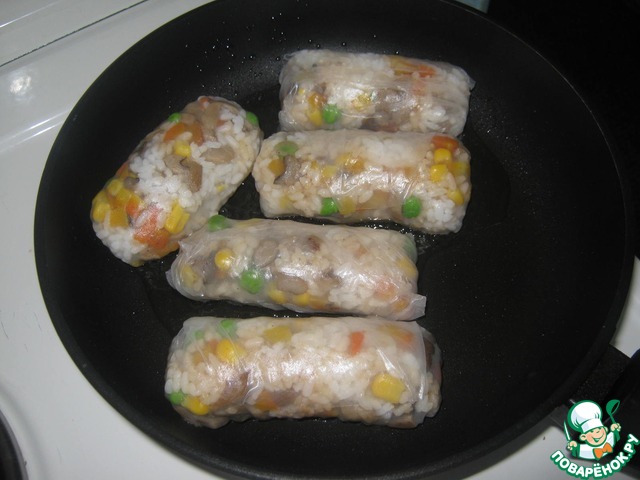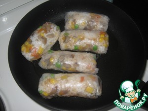 Готовые рулетики обжарить на растительном масле с двух сторон.