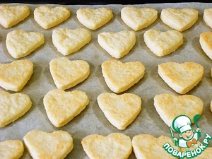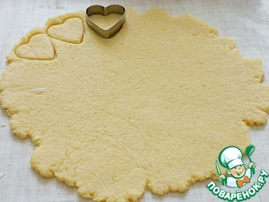 Раскатать тесто толщиной примерно 0,5 см, и нарезать с помощью формочек. -
