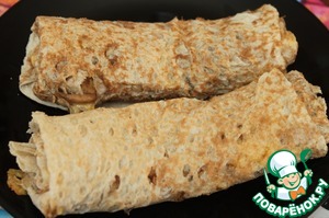 Свернуть рулетом, загнув торцевые края внутрь, чтобы не вытек сыр.