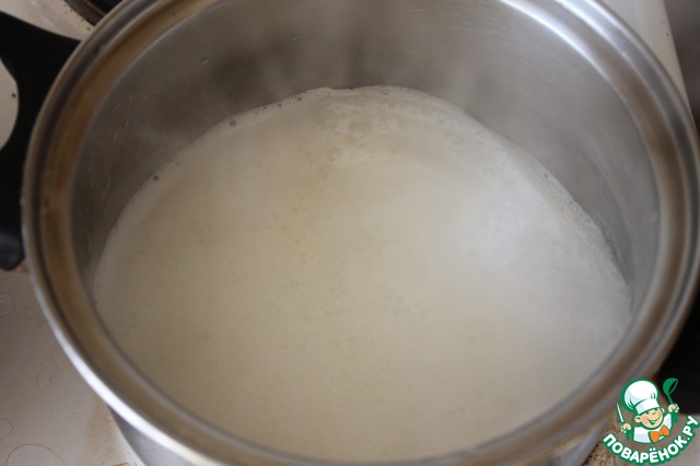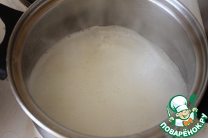 Молоко довести до кипения, убрать с огня и распустить в нем желатин
