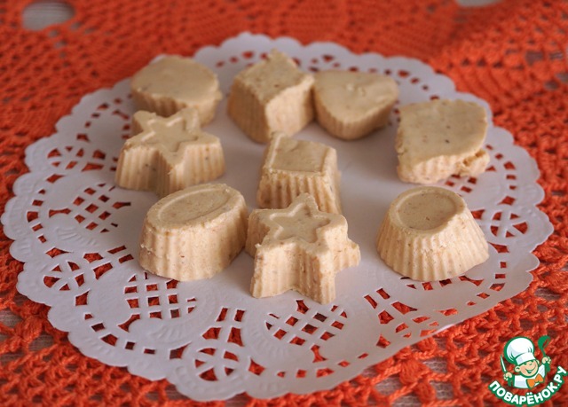 Заполнить формочки для конфет приготовленной массой, отправить в морозилку на 30 минут - до застывания. Конфетки и в холодильной камере застынут, но чтобы хорошо вытаскивать их из формочек - нужно слегка подморозить. Углубения в конфетках можно заполнить конфитюром. Конфетки не будут льдинками, структура останется нежной и приятной! Угощайтесь!