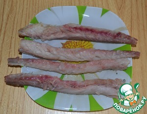 Чистим рыбу, удаляем косточки, филе делим на 4 части -