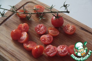 Пара штрихов - нарежьте пополам помидоры черри и козий сыр ломтиками.
