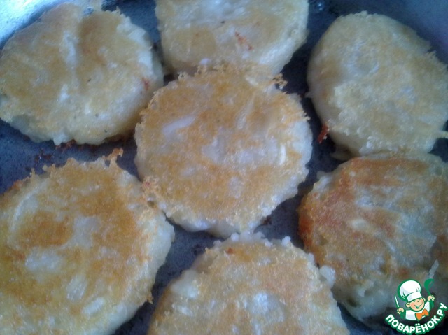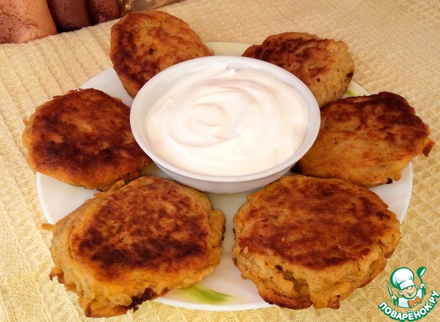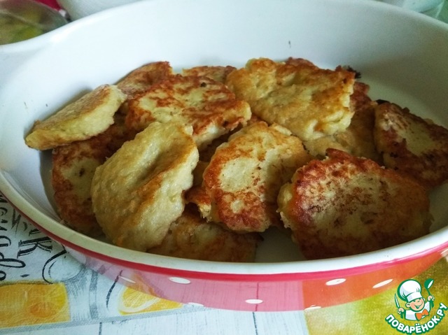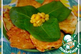 Обжарьте оладьи до красивой, румяной корочки и сложите на противень. Доведите их до готовности в духовом шкафу. Так, они останутся хрустящими, но сочными.