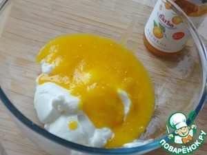 Добавьте абрикосовый конфитюр ТМ D'arbo. В нем минимальное содержание сахара, а как известно, его уменьшение ведет за собой снижение калорийности. Тщательно взбейте.