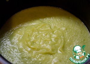 Добавляем теплое молоко и измельчаем овощи с помощью блендера в однородную массу. Пробуем на соль, редактируем если нужно. Я опустила блендер прямо в чашу мультиварки и аккуратно измельчила.