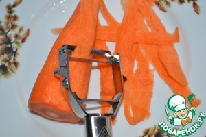 • Пока печется баба, морковь с помощью специального ножа нарезаем полосками.