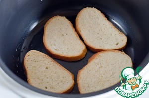 Обжарить все ломтики хлеба с двух сторон, если вдруг времени не хватит, то можно его прибавить. -