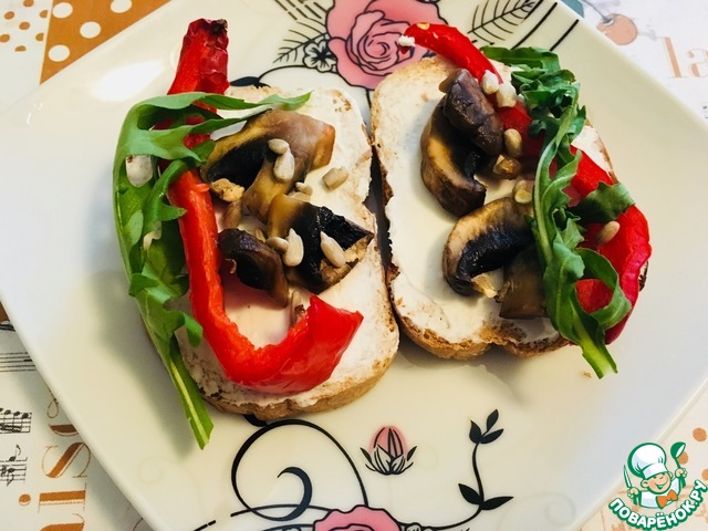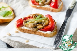 Рецепт «Тосты с творожным сыром и запеченными овощами»: