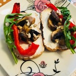 Тосты с творожным сыром и запеченными овощами