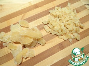 Засахаренный имбирь нарезаю на кусочки,