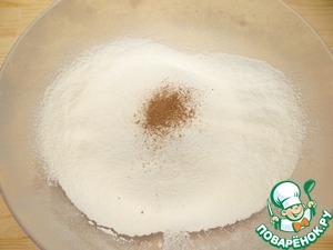 Просеиваю муку с разрыхлителем, добавляю щепотку молотого мускатного ореха.