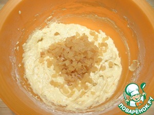 Добавляю в тесто кусочки засахаренного имбиря.