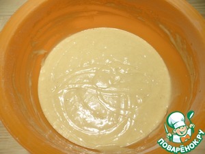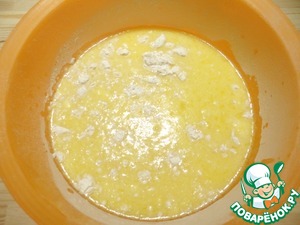К мучной смеси добавляю растопленное сливочное масло с медом и молоком, массу перемешиваю.