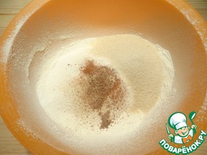 К мучной смеси добавляю смесь специй, коричневый сахар, перемешиваю.