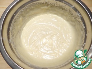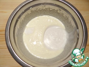 В это время готовлю тесто для кексов. Яйца хорошо взбиваю с сахаром с помощью миксера.