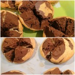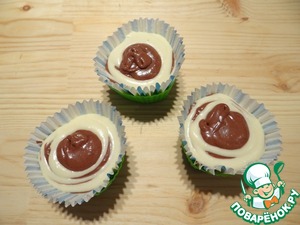 С помощью чайной ложки выкладываю попеременно белое и коричневое тесто.