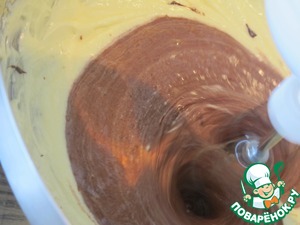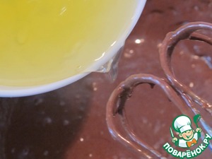 200 г. шоколада растопить на режиме " Подогрев", влить в маслянистую смесь, хорошо перемешать.