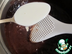 Чашу помыть. Оставшийся шоколад растопить на режиме" Подогрев", влить сливки, хорошо перемешать.