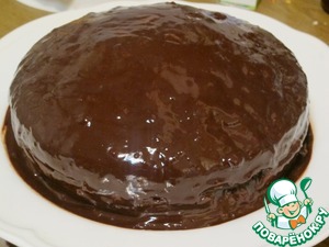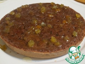 Бисквит я разрезала на две равные части, нижнюю обмазала абрикосовым джемом, можно апельсиновым, но перед этим нужно бисквит пропитать. Я пропитала просто, развела водичкой джем и хорошо пролили коржи.